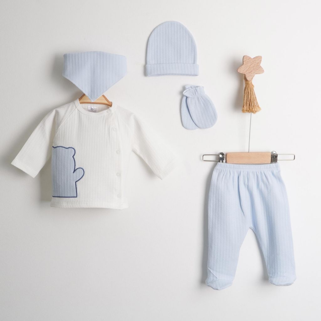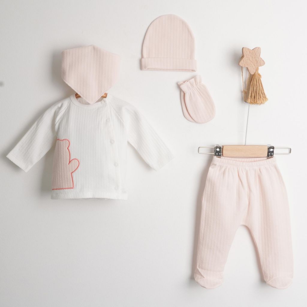 Bear Nakışlı Yenidoğan Beş Parçalı Zıbın Takımı